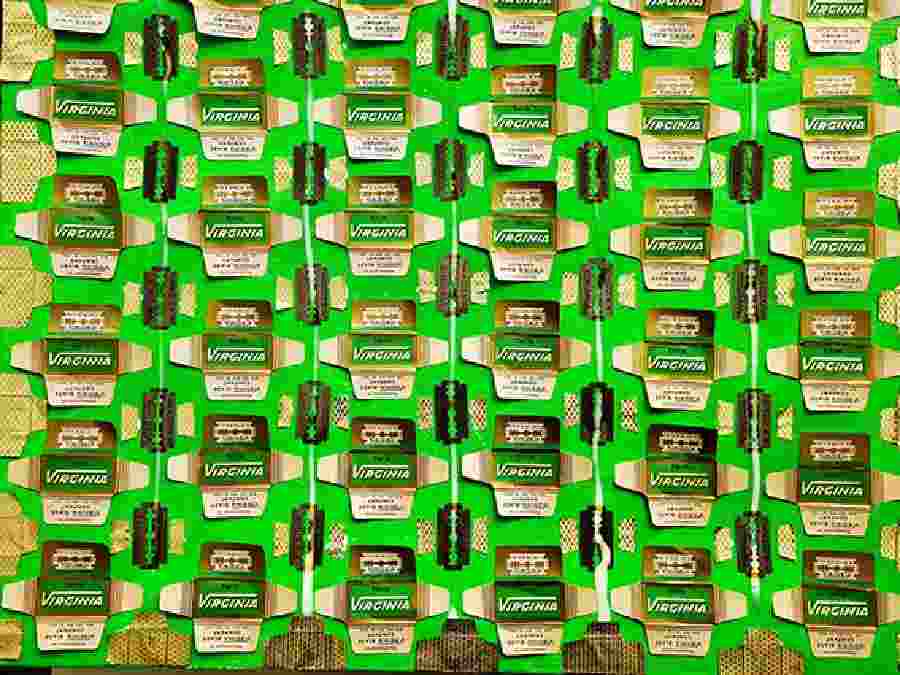 La lametta, il semplice oggetto di uso comune che lega la gestualità quotidiana di uomini e donne, è utilizzata da Marco Angelini come strumento base del suo linguaggio, della sua ricerca artistica. Il piccolo oggetto viene assemblato in forme aperte, chiuse e semiaperte secondo serialità che riportano alla memoria dell’osservatore i circuiti stampati di schede elettroniche: il massimo della razionalità umana nel sintetizzare operazioni complesse.