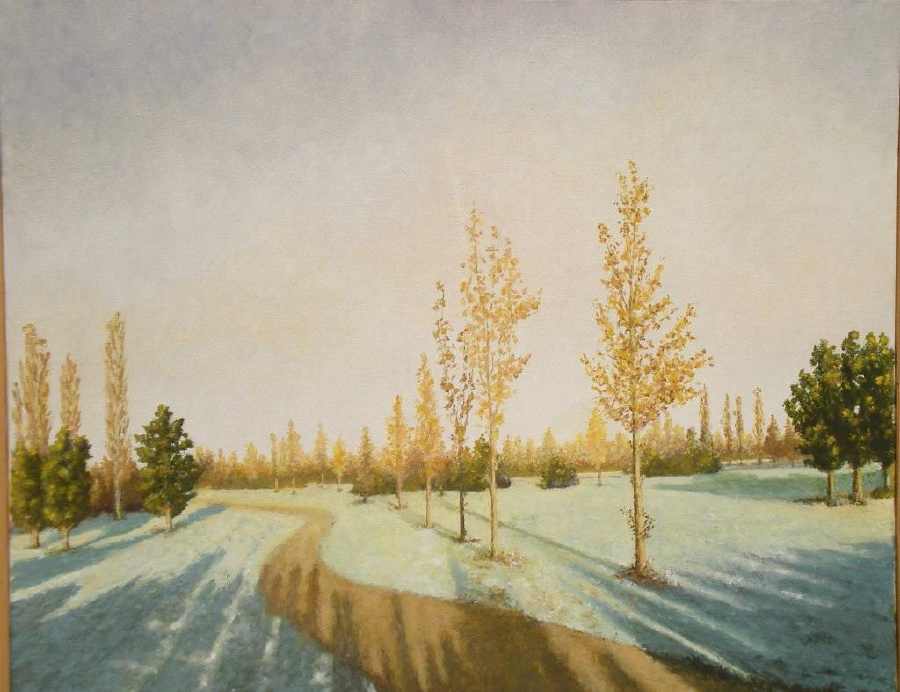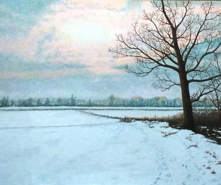 Pittura di paesaggio, quella del nostro artista, tutta concentrata sulla luce e le atmosfere, sulla resa pittorica del vero e delle emozioni che da esso scaturiscono. Pittura vera e concreta dunque, libera da trucchi e invenzioni tecnologiche oggi sempre più diffuse e utilizzate per raggiungere chissà quali obiettivi. La sua espressione è invece basata su forme chiare e ben delineate, su superfici sapienti e meticolose capaci di testimoniare, senza troppi equivoci, la padronanza delle tecnica e del mestiere. Così, nelle sue opere non troviamo voli pindarici di forme, né vaghe astrazioni cromatiche, ma precisione realistica, solidità di materia e poi, molto spesso, un’atmosfera rarefatta e sospesa, delicata e leggera, che sa di stupore e magia. E’ la nuova realtà dei nostri giorni che, filtrata dall’immaginazione e dalla meraviglia, riesce a materializzare sulla tela gli stati d’animo. E’ l’arte che non è succube della natura, ma la controlla e la domina adeguandola alla sua visione e alla sua interpretazione.