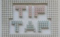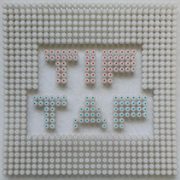 “Tip-Tap”, parola visiva realizzata con centinaia di tappi da vino, sta ad indicare come il gioco stesso possa incarnarsi nell'opera.