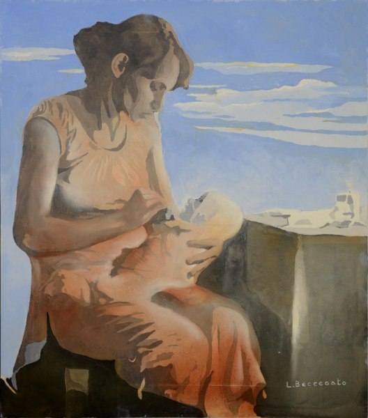 Leonardo Beccegato (VE): ritorna alla “Studio C” Leonardo Beccegato, dopo una pausa durata diversi anni: un ritorno atteso dai numerosi appassionati che seguono l'attività della galleria piacentina e accolto con entusiasmo da operatori, collezionisti e critici d'arte. Nato e residente a Venezia, Beccegato è un artista dal lungo e interessante curriculum critico-espositivo fatto di mostre prestigiose tenute in tutta Italia e nelle principali capitali d'Europa. Intenso e qualificato anche il suo percorso artistico proiettato verso una ricerca continua e assidua di emozioni e atmosfere dove cultura storica, filosofica, letteraria e scientifica si uniscono insieme per una proposta espressiva nuova e coinvolgente. Per questa mostra piacentina l'artista ha scelto di presentare tre opere dedicate alla figura umana e sono, come sempre, lavori di rara intensità e bellezza. I suoi personaggi sono maestosi, statuari e portano dentro impressioni e suggestioni complesse che spaziano dal Realismo Magico alla Metafisica con richiami che spesso ricordano, negli sfondi e nelle lontananze, la scenografica pittura dei grandi vedutisti veneti. Ma ciò che più colpisce, nell'espressione di Leonardo Beccegato, è la sua straordinaria abilità di muovere e creare la luce: una luce spesso tenue e delicata, languida e morbida, un sussurro che sembre provenire dall'interno stesso della materia e che si irradia poi ad ogni parte del quadro. Nascono in questo modo le sue atmosfere e sono atmosfere sospese, rarefatte, a metà strada tra sogno e realtà, attimi e momenti di attesa dove il tempo, insieme agli eventi, sembra essersi fermato. Pittura spesso enigmatica perchè sembra scavare negli abissi più profondi dell'umana coscienza e porre seri interrogativi sulla vita e l'umano esistere.