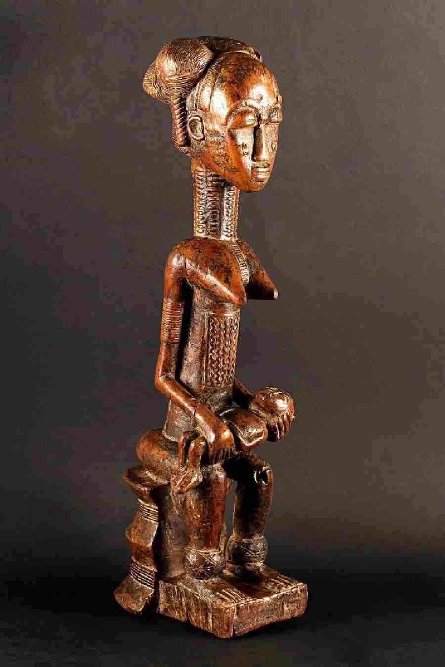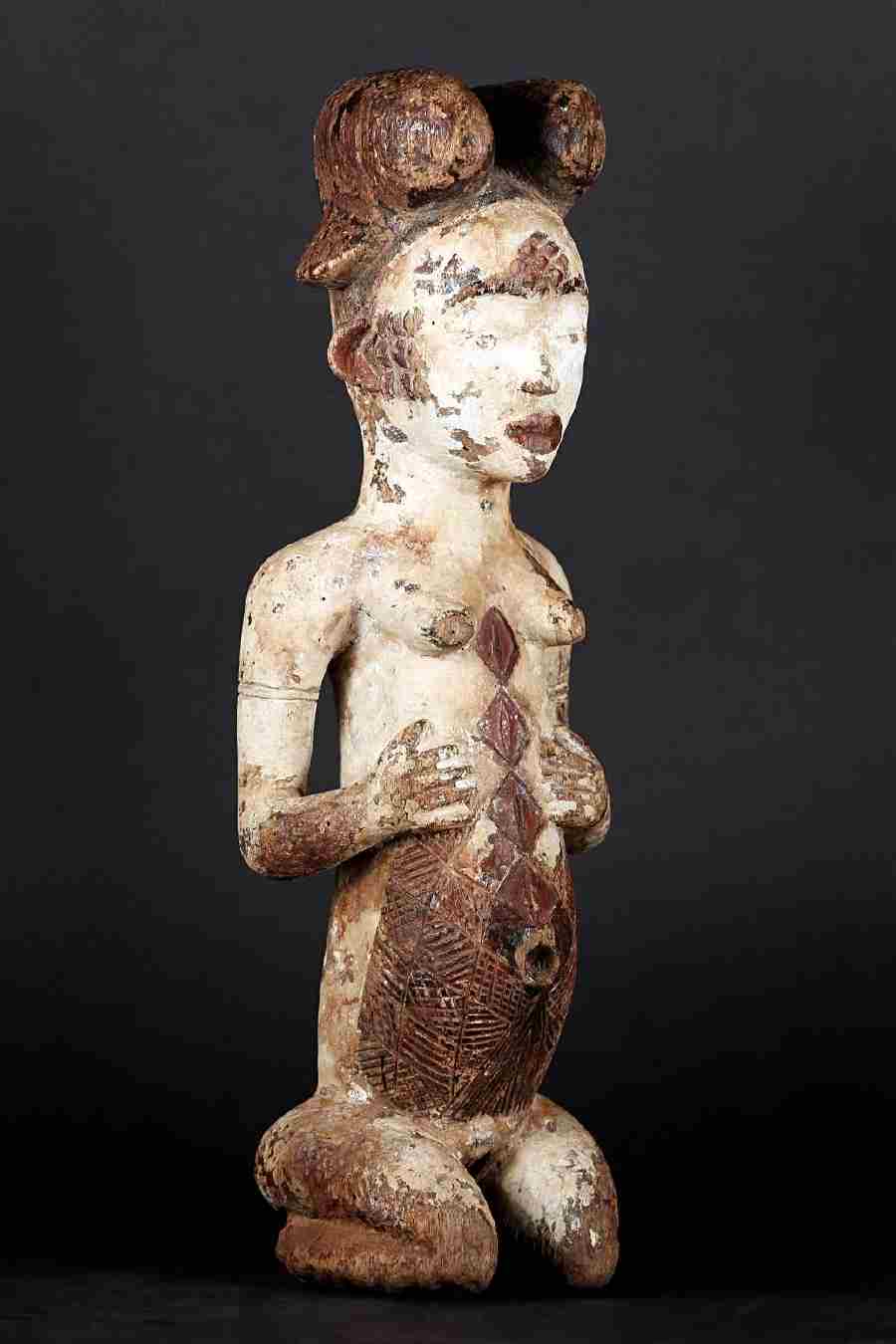 La donna riveste da sempre un ruolo fondamentale nelle società tradizionali africane. Oltre alle attività casalinghe e di assistenza, anche il lavoro agricolo e la cura degli animali domestici sono istituzionalmente affidati a donne e bambini. Dunque, per sopravvivere e, talvolta prosperare, le comunità devono assicurarsi la più ampia disponibilità della principale risorsa: la forza lavoro umana. Il destino di ogni lignaggio dipende dalla sua capacità di non farsi mai mancare braccia giovani e sane adatte a lavorare e combattere. Per riuscire, devono essere in grado di avere molti figli e di generarne in continuazione poiché la mortalità infantile è altissima e la durata della vita molto breve. Ciò spiega perché la figura femminile rappresenti uno dei cardini dell’iconografia africana come, peraltro, si osserva in tutte le arti figurative delle società umane. Tuttavia, l’Occidente ammira la scultura dell’Africa nera per la sua ricchezza stilistica e inventiva formale, perdendo di vista il valore rituale che essa ha, invece, per i popoli che la producono. Si tratta, infatti, di oggetti di culto, creati per favorire il rapporto con il sovrannaturale. E’ bene tenere sempre in considerazione questo aspetto per non osservare le sculture africane come mero oggetto di contemplazione.