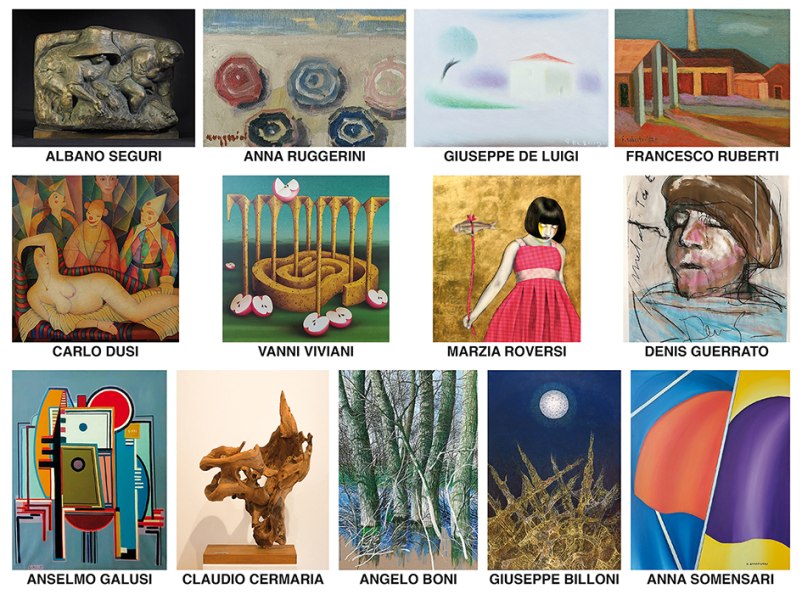 In mostra le opere degli Artisti: Giuseppe De Luigi (Stradella di Bigarello, 1908 - Genova/Quarto, 1982), Francesco Ruberti (Mantova, 1908 - Mantova, 1992), Anselmo Galusi (Bagnolo S. Vito, 1909 - Mantova, 2003), Albano Seguri (Mantova, 1913 - Mantova, 2001), Carlo Dusi (Mantova, 1917 - Mantova, 1995), Anna Ruggerini (Mantova, 1927 - Mantova, 2022), Angelo Boni (Suzzara, 1935 - Carpenedolo, 2020), Vanni Viviani (San Giacomo delle Segnate, 1937 - Mantova, 2002), Anna Somensari (Mantova, 1940 - vive a Mantova), Claudio Cermaria (Cattolica, 1942 - Mantova, 2014), Giuseppe Billoni (Roma, 1953 - vive a Mantova), Marzia Roversi (Poggio Rusco, 1962 - vive a Poggio Rusco), Denis Guerrato (Nogara, 1970 - vive a Castel d’Ario).