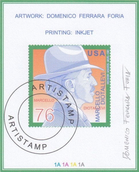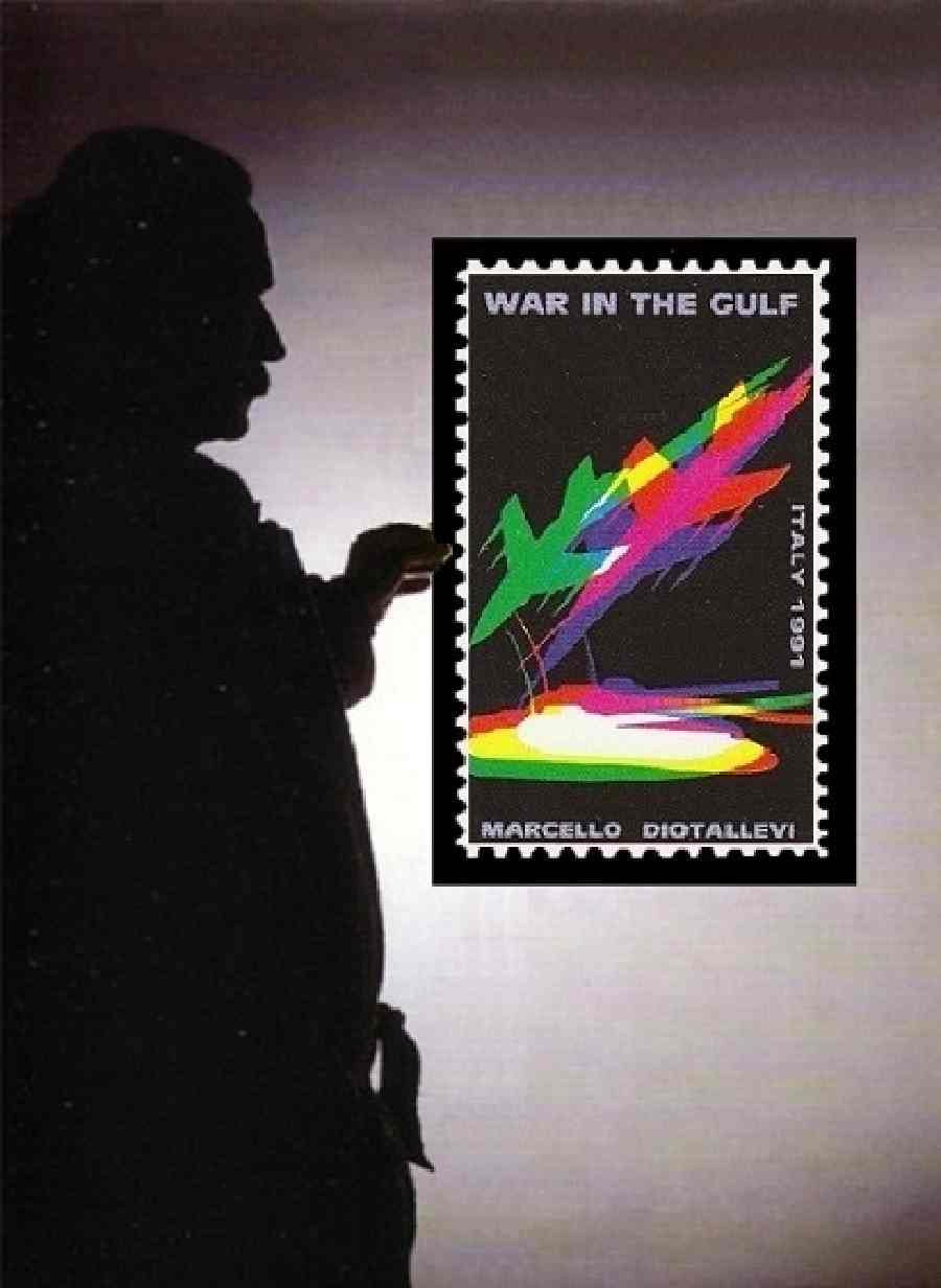 Marcello Diotallevi, classe 1942, sul finire degli anni Settanta ha iniziato le sue irruzioni nell’area della Poesia Visiva, utilizzando le lettere dell’alfabeto per accumuli, disseminazioni liberati da qualsiasi senso e significato letterale, e in questi ultimi anni, anche del recupero del colore e dell’uso gioioso della pittura. Artista di voli a cielo aperto di “parole al vento”, di insolite lettere senza destinatario che ritornano al mittente; lettere in cui l’accumulazione grafica di simboli di tipo grafico creano nuove associazioni sempre imprevedibili e nuove, disarticolando il linguaggio e riducendolo a pezzi. L’intera produzione dell’artista di Fano nasce dall’ibridazione dei linguaggi fino a sconfinare con convincente disinvoltura nella poesia visiva. Di questi ludici interventi provocatori ne è responsabile Marcel Duchamp artista amato da Marcello per la componente estetica e concettuale. Decisamente rigorosi appaiono i francobolli d’artista e le Lettere da Citera presenti in questa mostra personale che l’artista ha creato durante la sua lunga e intensa attività. L’attenzione verso il francobollo d’artista di piccolo formato nasce nel 1984 con un francobollo “Jeune Peinture”, con fiaba al vento, presentato al Grand Palais di Parigi. Tutti i francobolli presenti trattano temi fantastici, ironici e soprattutto sociali in linea con la poetica pungente e immaginifica dell’artista fanese. Anche le lettere da Citera, opere realizzate su carta (cm 21x30) con tecnica di dattilografia su foto xerografia, rispettano questa attenzione e rigorosa severità alla composizione e al poetico messaggio nascosto e ibridato tra i lineamenti definiti del corpo. Dedicate alla donna, nascono per essere lette e magari decifrate. Francobollo, lettera e lettere dell’alfabeto diventano così gesto d’amore e nel contempo veicolo alla ricerca di un ipotetico destinatario. Una sorta di volo poetico dentro la fantasia e l’incanto con la messa a fuoco di presenze che cercano di esercitarsi al viaggio e condividere l’in-definito. Lettere dal destino vago relazionano tra gli oscuri anfratti della mente con immaginari francobolli in attesa che qualche possibile destinatario possa decrittare gli oscuri presagi della parola, si aggrappano avidamente all’immaginazione e si lasciano trasportare al flusso delle correnti, coscienti di non poter essere più significato compiuto ma sola presenza e indizio sfuggente.