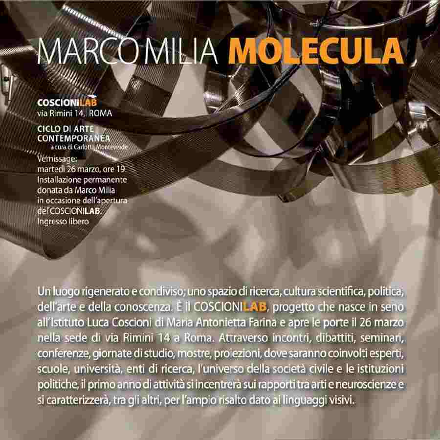 L’opera che apre il ciclo sull’arte contemporanea, invece, è l’installazione permanente di Marco Milia Molecula, scultura “aerea” realizzata in situ e donata al CoscioniLAB.