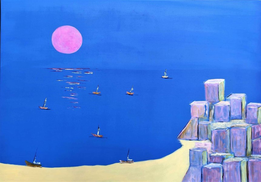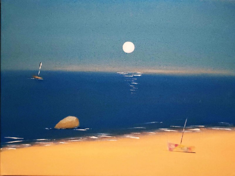Scrive la storica dell’arte Martina Scavone: Il racconto pittorico di Diego Veneziani si sviluppa con scelte orientate dai propri ricordi, a cui si accompagna un sentimento di dolce nostalgia che trapela dalla rappresentazione di imbarcazioni isolate, le quali si stagliano su di un mare sconfinato, quasi come fossero in attesa del ritorno di chi, con tanta delicatezza e premura, le ha dipinte. Ed ecco che alcune guardano proprio verso la costa - ritratte singole piuttosto che a coppie oppure ancora a gruppi di due, tre ed oltre - aspettando forse che un volto faccia capolino e che una figura appaia all’orizzonte. Profondo e spirituale è il legame di Veneziani con il suo mare, rievocazione di emozioni rimaste impresse nel cuore e nell’animo di colui che, prima ancora di essere un pittore, è un uomo pervaso da un amore viscerale per la Natura e per la sensazione di libertà e proiezione verso l’infinito che solo il mare è in grado di regalare.