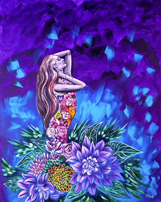 Ci sono motivi profondi che inducono gli artisti di ogni stagione del mondo a riattualizzare e tematizzare rimembranze dantesche. Per questo Marialuisa Sabato intitola la mostra “Vita Nova”. Ma se l’impetuosa dolcezza delle rime dantesche esplorava il campo fenomenico dell’amore e di una felice rinascita alla vita, l’artista si sofferma a esplorare la sinfonia del trascorrere delle stagioni e di un risveglio alla vita: un percorso interiore che sottintende i legami simbolici fra primavera e rifioritura spirituale, fra primavera e fecondità, fra primavera e femminilità: emerge con forza in tutte le opere un’innata predisposizione alla visionarietà e al fabulistico, che permette di sfogliare le pagine del suo mondo. È così che le tele si caricano di intime memorie, lasciando scorrere un flusso immaginifico che trascende il momento presente e trasmette un senso ultra-temporale e poetico. È come se l’artista volesse arrivare ad un’arte del cuore, finalizzata a suggerire e a moltiplicare il significato dell’opera sottintendendone messaggi nascosti.