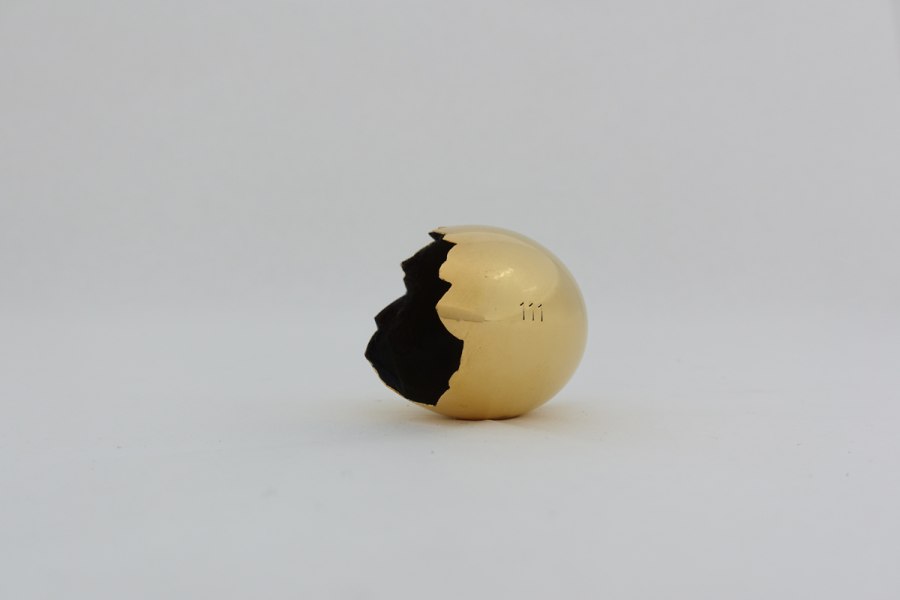 Successivamente i gusci frantumati sono divenuti sculture uniche, realizzate in rame elettroformato, numerate e placcate in oro 24K.