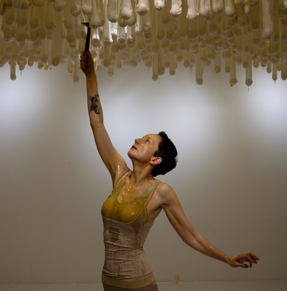 "Ogni uovo che ho rotto durante la performance è una opportunità di maternità mancata in favore dell'arte", afferma con una punta di ironia Jovanovic, che ha così trasformato alchemicamente quanto di più sacrilego sarebbe potuto accadere in un mondo distopico come quello narrato da Margareth Atwood ne "Il racconto dell'ancella".