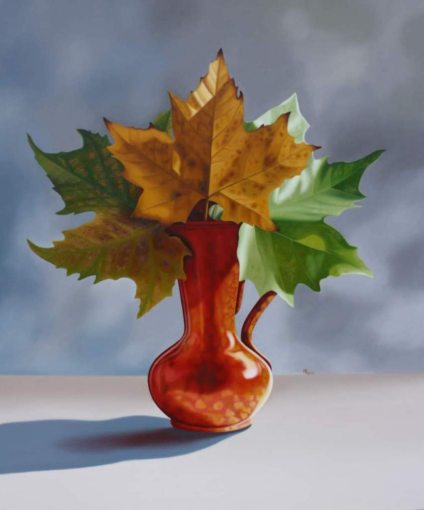 “La natura morta”, un genere tornato prepotentemente alla ribalta in questi ultimi anni grazie anche, e soprattutto, alle grandi mostre istituzionali dedicate a questa tematica e alle numerose pubblicazioni sull’argomento, un ritorno, dunque, alla tecnica, alla poesia delle cose, alla vera pittura. Le nature morte di Massimo Ragionieri sono davvero raffinatissime ed essenziali: l’artista riduce al minimo il contesto (gli sfondi sono di solito monocromi) per concentrarsi solo ed unicamente sugli oggetti e le cose rappresentate che così diventano unici ed indiscussi protagonisti, veri e propri ritratti inanimati in grado, però, di trasmettere intense emozioni. Sono opere dal sapore antico, eseguite con grande perizia e abilità, ma anche con tanto cuore e sentimento: colpisce la cura riservata al particolare, al minimo dettaglio, dall’ombra sulle foglie alla delicata patina sulla frutta. E ancora, chi osserva, resta affascinato dalla trasparenza del vetro, dal riflesso della luce sugli oggetti, dalle atmosfere rarefatte e sospese, quasi surreali. Pittura che, per certi versi, richiama la grande e rinomata scuola fiamminga ma che si fa altresì moderna e contemporanea per il taglio compositivo sintetico e deciso, la libera e personale interpretazione, per l’atmosfera generale che avvolge e anima ogni opera.