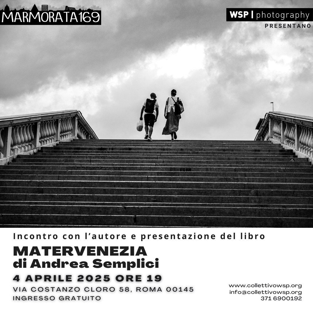 WSP Photography in collaborazione con Marmorata 169 è lieta di ospitare venerdì 4 aprile 2025 dalle ore 19.00 la presentazione del libro “MaterVenezia” e l’incontro con il suo autore Andrea Semplici, scrittore, giornalista e fotografo.