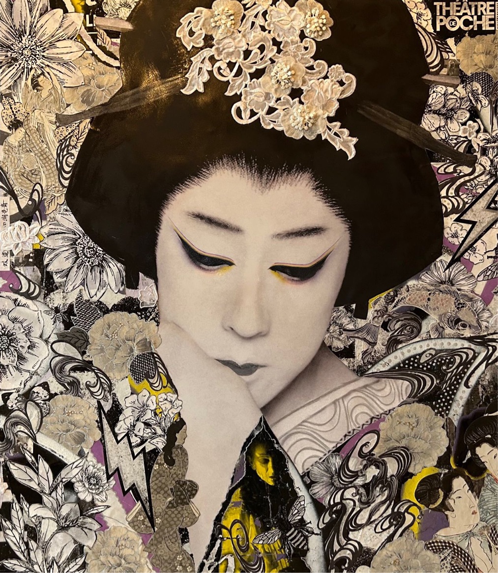 Carte pregiate, poster, tessuti ricercati e raffinati provenienti da Francia e Giappone, colori acrilici e resine danno vita al modus operandi ormai noto e apprezzato di Ceccarelli.
