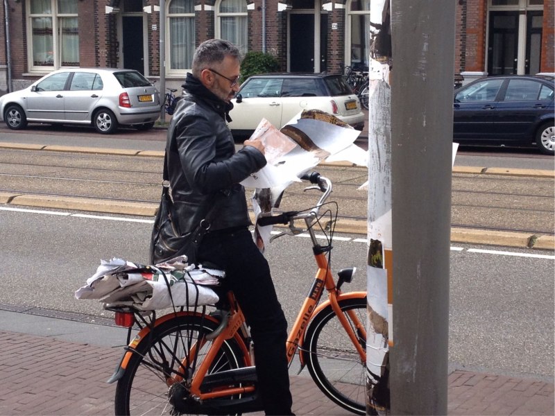 L’artista strappa i manifesti dai muri, li riporta direttamente sulla tela o sulla scultura e, una volta incollati sul supporto, questi vengono nuovamente lavorati dall’autore che grazie alla sua manipolazione li restituisce a nuova vita, trasformandoli in opere d’arte.