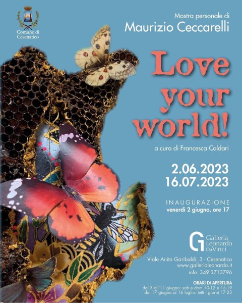 La Galleria comunale “Leonardo da Vinci” presenta, dal 3 giugno al 16 luglio 2023, la mostra Love your world! MAURIZIO CECCARELLI, promossa dal Comune di Cesenatico e curata da Francesca Caldari.