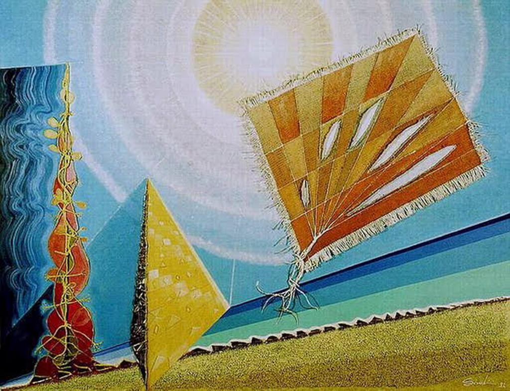 Nato ad Ancarano, in provincia di Teramo, dove anche oggi vive e lavora, Maurizio Sacchini è pittore, grafico e fotografo. Dopo aver frequentato l'Istituto d'Arte di Ascoli Piceno, ha da subito iniziato un lungo lavoro di studio e ricerca all'interno delle forme, dei colori e dei materiali partecipando poi a svariate manifestazioni artistiche di rilievo nazionale e internazionale. Ampio e variegato, dunque, il suo curriculum artistico e di rilievo anche il suo bagaglio critico che si avvale di numerosi interventi firmati da nomi prestigiosi e autorevoli. Ciò nonostante, Maurizio Sacchini è personaggio discreto e riservato, lontano dai facili clamori e dalle facili ostentazioni così diffuse nel mondo dell'arte di ieri e di oggi. Riservato per scelta, dunque, per cercare una condizione ottimale di lavoro, per seguire in assoluta libertà e indipendenza i suoi sogni e la sue riflessioni, per evitare condizionamenti di ogni tipo ed essere fino in fondo se stesso. Riservato, certamente, ma non per questo fuori dalla storia, anzi, ben ancorato ai Movimenti d'Avanguardia Internazionali (Astrattismo, Surrealismo, Metafisica ecc) perchè colto e riflessivo, attento alle dinamiche relazionali e raffinato interprete dell'animo umano. Dietro al suo atteggiamento, pertanto, c'è sicuramente la saggezza dell'uomo, ma anche e soprattutto, la competenza del vero professionista e il giusto orgoglio di un artista che preferisce parlare di sé attraverso il proprio lavoro: un lavoro svolto con cura meticolosa, con profondità di pensiero e con una padronanza tecnica che spesso può indurre alla sorpresa. Affascinato dall'arte e dai suoi linguaggi, ha sempre proceduto, e ancora procede, con metodo e rigore quasi scientifici affrontando varie tematiche, analizzando argomenti, entrando direttamente, con coraggio e intelligenza, nelle più svariate problematiche del nostro tempo: l’alienazione, il disastro ecologico, la solitudine, la guerra. Procede dunque per “cicli” Maurizio Sacchini, (l'isola non trovata, la guerra, Flash, la mia strada ecc.) seguendo sempre il suo stile, il suo linguaggio, il suo modo di intendere e concepire la comunicazione artistica. Prende vita, in questo modo, un'espressione intensa e personale, un mondo complesso e variegato dove il colore si unisce a cose, oggetti e materiali facendosi forma e percorso, pensiero e fantasia, calando tutto quanto in atmosfere raffinate, delicate e sospese, al di fuori del tempo e dello spazio. In questa mostra piacentina ampio spazio viene dato al ciclo dell'Isola non trovata. E' questa una tematica particolarmente cara al nostro artista e che ricorre spesso nelle sue opere. L'isola non trovata rappresenta, per Maurizio Sacchini, una meta non raggiunta e forse non raggiungibile, un luogo ideale dove fermare il tempo e vivere in assoluta libertà. Di grande effetto estetico e scenografico i frammenti di specchio inseriti nelle immagini che diventano simbolo e metafora dell'umano esistere, della sempre presente contraddizione tra l'Essere e l'Apparire, tra l'esteriorità e l'interiorità. Non mancano poi, in queste scenografiche sequenze, sagome monumentali ed immobili come le piramidi, eloquenti dimostrazioni di grandezza ed immutabilità a cui però si contrappongono colorati palloncini ed aquiloni che si innalzano liberi nel cielo azzurro: anelito e ricerca di aria diversa e pulita, di un mondo più giusto ed umano, di una libertà vera e concreta. Con la stessa fantasia e creatività, l'artista entra poi nella tematica dedicata alla Guerra Mondiale. Si tratta, anche in questo caso, di un ciclo lungo e articolato, a cui Maurizio Sacchini ha dedicato tempo, lavoro e ricerca. La guerra, argomento violento e drammatico, ingiusto e crudele, è tornato oggi di forte e inaspettata attualità con il conflitto tra Russia e Ucraina, una guerra ai confini dell'Europa che tiene tutti con il fiato sospeso per le terribili conseguenze che ne possono derivare. Ma non c'è retorica nelle opere di Maurizio Sacchini, né facile ostentazione o compiacimento descrittivo. Troviamo, al contrario, delicatezza di pensiero, leggerezza poetica, desiderio e ricerca di pace, armonia e solidarietà. Colori, luce, simboli e materiali vengono così a comporre un vero e proprio mosaico di vita fatto di antiche e nuove memorie e di esaltanti proiezioni cosmiche immerse nel tempo e nello spazio.