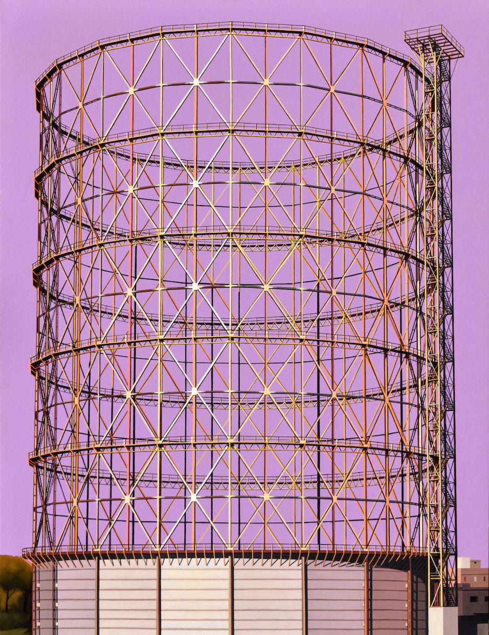 MAURO REGGIO si dedica unicamente alla raffigurazione del paesaggio urbano, di cui ne esalta prospettive e architetture spogliandole dei segni e della presenza dell’uomo per metterne in evidenza le geometrie e i colori e trasformandole nel vero e unico soggetto del quadro. I suoi soggetti sono tangenziali, gasometri, palazzi barocchi e archeologie industriali ritratti in un presente senza tempo. L’artista dipinge monumenti provenienti da epoche diverse a partire dai colori tipici della grande tradizione italiana del XX secolo, poi trasformati e rinnovati sulla base delle più recenti riflessioni contemporanee su fotografia, pittura e nuove tecnologie. Nasce a Roma nel 1971 e nel 1993 si diploma con lode all’Accademia di Belle Arti della sua città. Ha realizzato mostre personali e collettive in gallerie di prestigio, musei e spazi pubblici in Italia e all’Estero. Nel 2011 e 2015 è stato invitato a partecipare alla Biennale di Venezia. I suoi dipinti fanno parte di numerose collezioni pubbliche e private, tra le quali si segnalano quella della Galleria d’Arte Moderna e Contemporanea di Roma (Macro), la Collezione Farnesina Experimenta presso il Ministero degli Affari Esteri e quella del Senato sella Repubblica Italiana con tre dipinti di grandi dimensioni di cui uno commissionato appositamente per la parete centrale della Sala Nassirya in Palazzo Madama adibita alle conferenze stampa. La Bulgari s.p.a. ha acquistato e collocato sue opere nei negozi di New York, Los Angeles, Chicago, Londra, Hong Kong, Taipei (Taiwan), Kuala Lumpur (Malesia) e nella sede centrale di Roma. Nel 2021 vince il Premio Eccellenti Pittori con un quadro che rappresenta il Colosseo. Vive e lavora a Rocca di Papa (Roma).