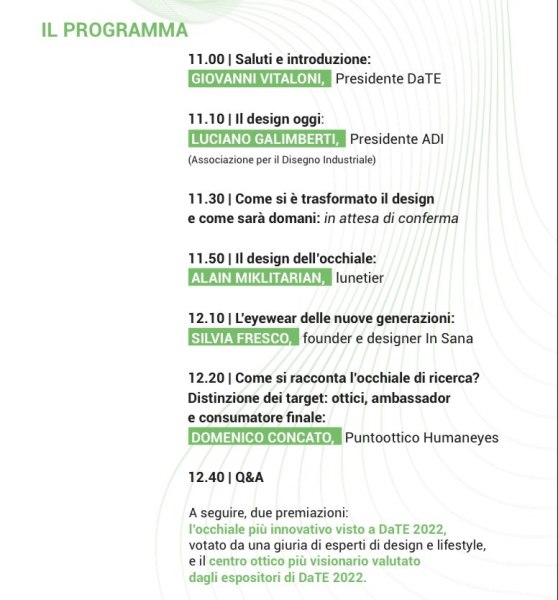 Per partecipare basta registrarsi, compilando il form in questa pagina https://dateyewear.com/medd/, senza dimenticare di selezionare l’interesse al workshop “Design e Eyewear Design” previsto dalle 11.00 alle 13.00.