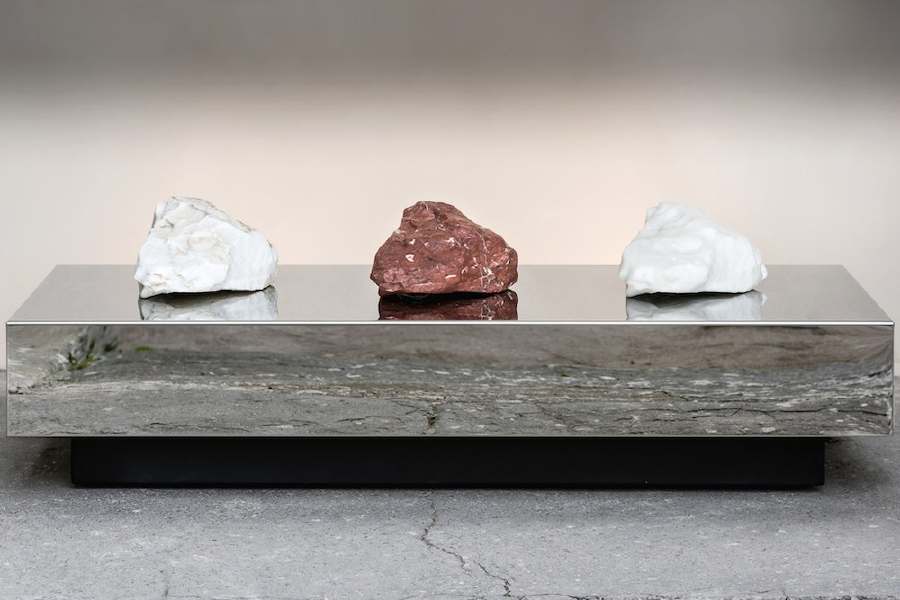 «Le tre pietre sono posizionate su un’ara in acciaio inox dalla superficie specchiante – spiega Paola Romoli Venturi – in modo che le ‘memorie’ della natura si riflettano e raddoppino, creando un rapporto intimo con lo spazio circostante e con l’osservatore che guardandole si vede riflesso insieme allo spazio e alla sua storia. In ogni luogo dove saranno esposte, le ‘memorie’ si rigenereranno di nuovi riflessi».