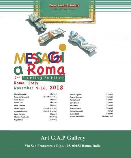 Il 16 novembre 2018 presso la Galleria Art G.A.P. ci sarà l’evento di chiusura della mostra collettiva, Messaggi a Roma, organizzata e curata in collaborazione con l'Associazione per il supporto delle relazioni arabo-europee, ASREA e il Forum Euro Arab Art Today.
