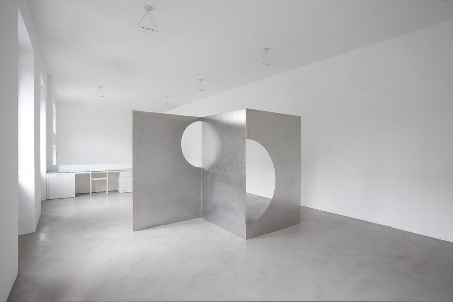 Per la prima volta l’artista francese presenta alcune sculture in acciaio inox realizzate con fogli piegati e tagliati da fessure semicircolari. Con queste opere intende evidenziare come “si renda percepibile, praticabile e intellegibile il «fatto» che il «vuoto», il «luogo» o lo «spazio» siano «necessari» per gli oggetti e i corpi, per la loro esistenza, la loro posizione e il loro movimento.”
