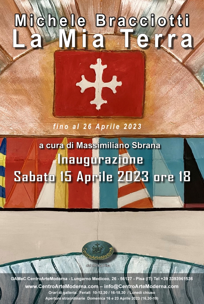 Si inaugurerà Sabato 15 Aprile 2023 ore 18, presso il GAMeC CentroArteModerna di Pisa (sul Lungarno Mediceo al numero 26) la mostra, ordinata e curata da Massimiliano Sbrana, "La mia Terra" del noto artista pisano Michele Bracciotti dedicata alla sue recente produzione artistica.