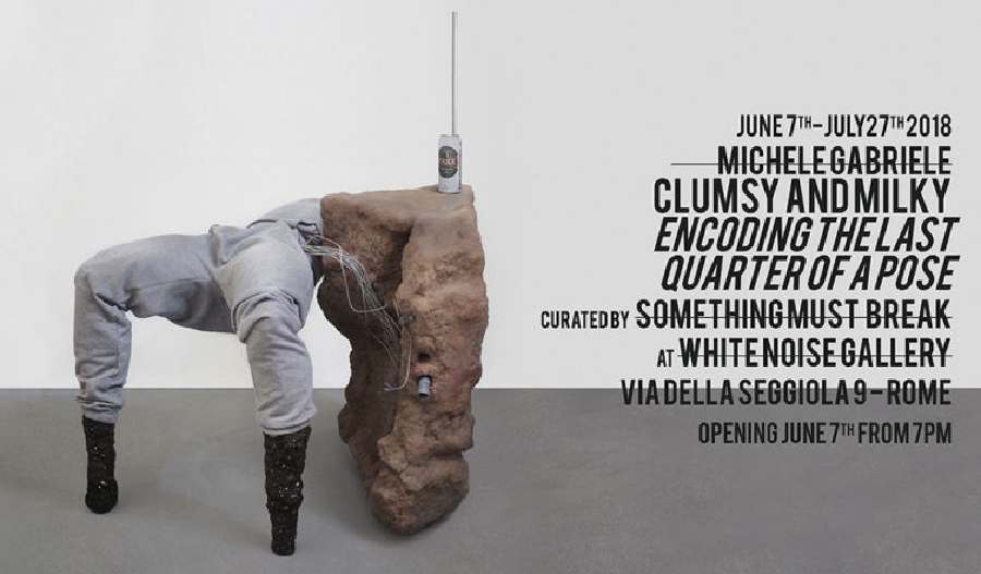 Questo interrogativo è il fulcro di “Clumsy and Milky: encoding the last quarter of a pose”, la prima personale romana di Michele Gabriele, che inaugura il 7 giugno nella nuova sede della White Noise Gallery a via della Seggiola, 9. La mostra dell'artista milanese presenta un allestimento di opere inedite curate dal progetto Something Must Break.