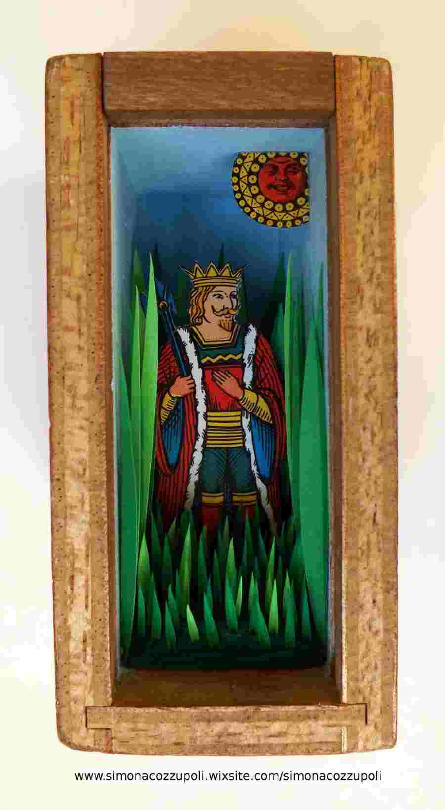 Micromondi fiabeschi che riportano alla dimensione ludica dell’infanzia e dell’umanità delle origini. Le piccole scatole di legno, scrigni dell'immaginazione e della meraviglia, sono stanze abitate da bamboline souvenir in posa come finti “tableaux vivants”, da giocolieri e da gemelle, da re e cavalieri delle carte e da uccellini origami in miniatura inquadrati in un cerchio di cielo, il “templum” degli Etruschi. Tutto è all’insegna della meraviglia, considerata fin dall'antichità un accesso alla conoscenza, e, nel