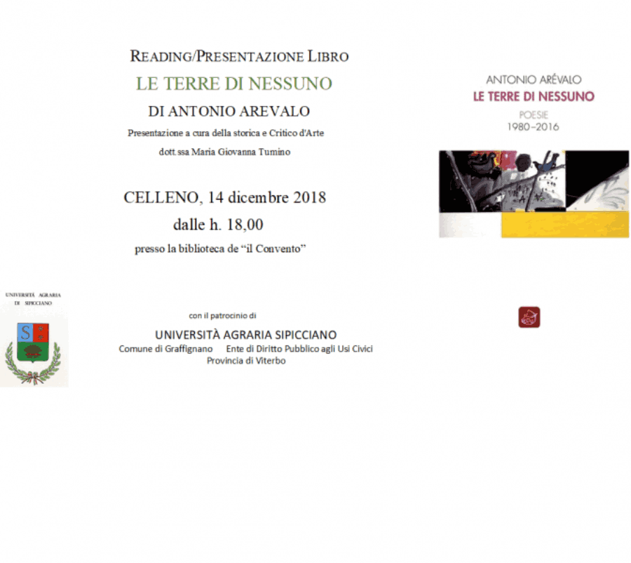 Dopo la presentazione del suo libro a Genova, Santiago del Cile, Viterbo e Roma Antonio Arevalo, sipiccianese di adozione (anzi sipicileno come usa definirsi) il 14 dicembre inizierà un mini tour nel nostro territorio della Tuscia. Celleno sarà la prima tappa e non mancherà, ovviamente, Sipicciano.
