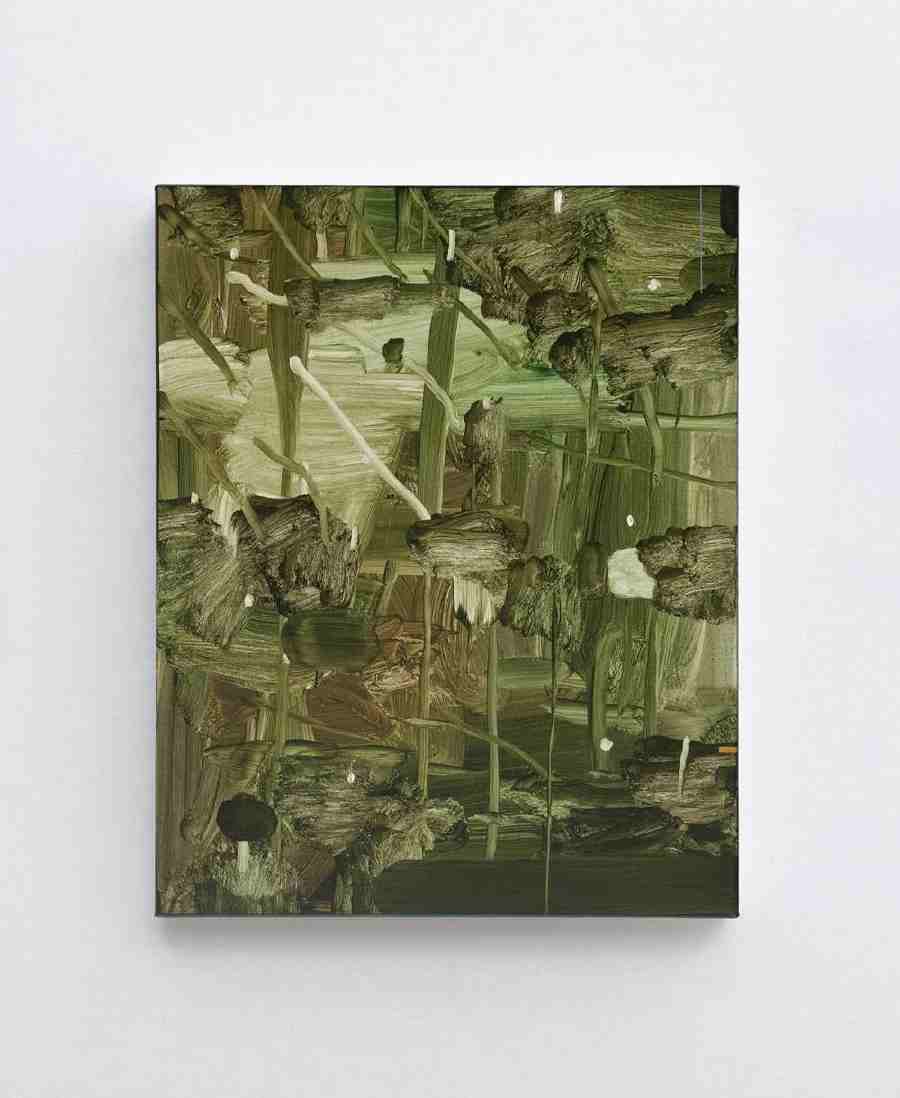 Le opere che costituiscono la serie Selva nascono da una pratica dalle modalità processuali caratterizzata dalla veloce successione di pennellate e di parziale rimozione del colore, prima che esso si fissi sulla superficie. Il quadro diventa infatti una sorta di campo da gioco in cui si manifesta un’ininterrotta contrapposizione tra l’urgenza della permanenza, mirata a fissare la materia pittorica depositata con la pennellata, e quella anarchica della rimozione della stabilità e della struttura, incarnata dal gesto di asportazione del colore. La tela va così progressivamente a saturarsi grazie alla reiterazione di gesti pittorici in cui le azioni conflittuali ma complementari di aggiungere/togliere hanno concettualmente, e in modo in apparenza paradossale, la medesima funzione costruttiva: pars construens e pars destruens sono cioè entrambe capaci di generare porzioni significative di immagine.