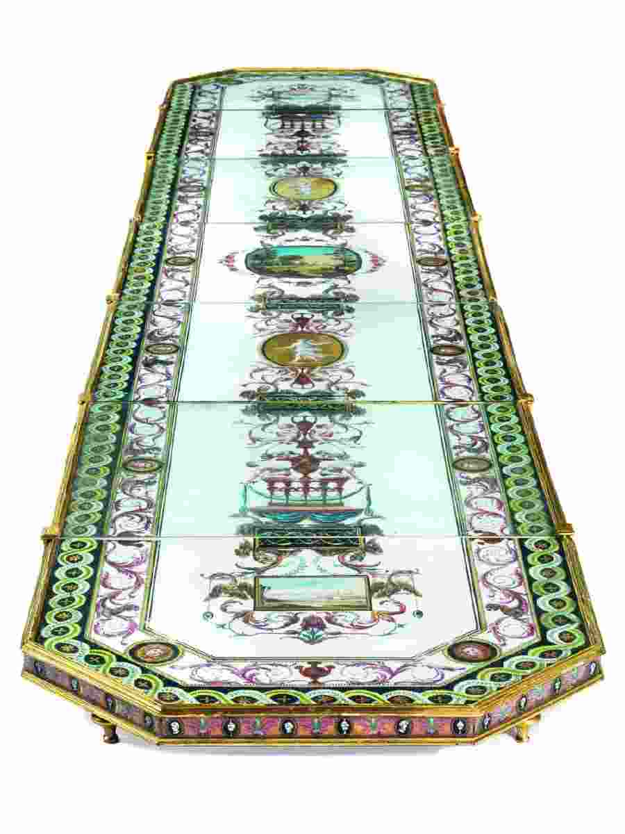 Dalla Lombardia al Piemonte con un raro Sortout de table destinato a impreziosire in maniera stupefacente una mensa principesca realizzato sicuramente in epoca neoclassica per un’importante residenza. Completo della sua custodia originale, un baule in legno che riporta ancora la targhetta con il numero d’inventario, è stimato 40.000/60.000 euro.