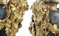 Ancora Francia fine del XVIII secolo per una rara Coppia di vasi realizzati in metallo brunito e decorati da manici a forma di teste di capra e ricchi festoni di foglie e grappoli d’uva in bronzo dorato e cesellato, stima 4.000/6.000 euro.