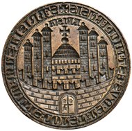 Secondo Adolfo Modesti (2016, pp. 442-443) questa medaglia realizzata da Andrea Spinelli nel 1534 rappresenta un’opera incisoria di straordinaria raffinatezza e impatto iconografico, sia per l’efficace rappresentazione del busto del doge Andrea Gritti, sul dritto, che per la precisione del prospetto della chiesa veneziana di San Francesco, incompiuta, sul rovescio. Di essa si sono occupati studiosi di medaglistica, ma anche storici dell’arte veneziana e cultori di arti magiche e cabalistiche e persino di massoneria. Tale medaglia infatti costituisce l’unica testimonianza del progetto di Jacopo Sansovino (1486-1570), protagonista della “Renovatio urbis” nella Venezia della prima metà del Cinquecento, per la costruzione della nuova chiesa di San Francesco della Vigna. Il 15 agosto del 1534 ebbe luogo la cerimonia della posa della prima pietra alla presenza del doge. Per l’occasione furono realizzate due medaglie, collocate anch’esse nelle fondamenta. Una, più modesta, riproducente la sola facciata, l’altra (qui esitata, pubblicata in A. Modesti n. 324), raffigurante l’intero prospetto della chiesa secondo il progetto originario. Gravi discussioni fra religiosi e secolari però, insorte già l’anno seguente sulle proporzioni da osservarsi nell’erigenda chiesa, causarono la sospensione dei lavori, prima, ed il cambiamento della struttura esterna, poi.