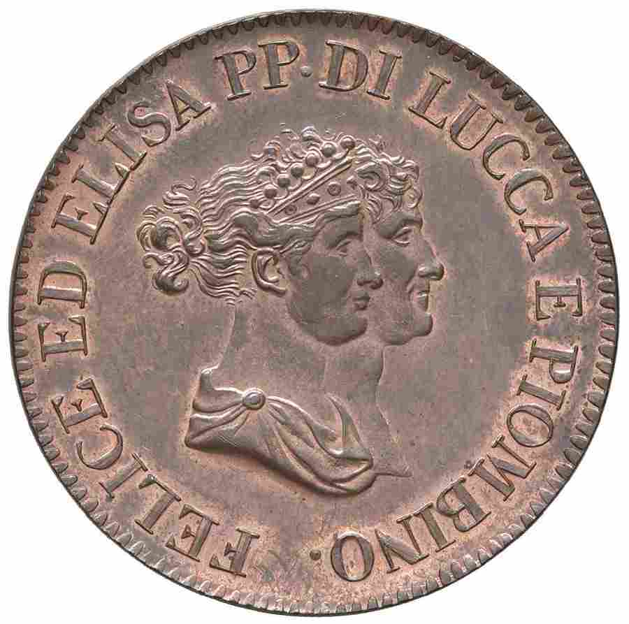 Molto importanti sono anche le due "prove" del Principato di Lucca e Piombino, rispettivamente in rame e argento in stato fior di conio, proposte in questa vendita e mai apparse sul mercato sino ad oggi per le quali sono richieste rispettivamente 8.000/12.000 e 10.000/15.000 euro.
