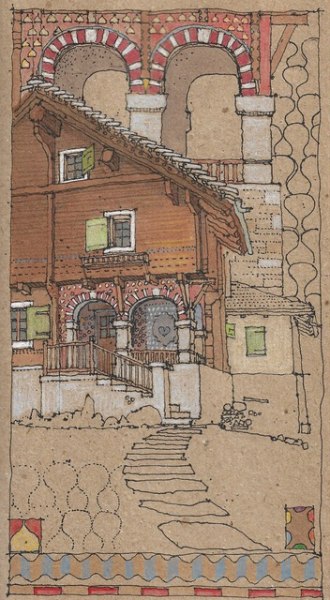 Having settled in Milan, Magruder's work is pervaded by echoes that bounce from one side of the Atlantic to the other. Mindful not only of American artists, architects, and illustrators of the caliber of Frank LLoyd Wright, Winsor McCay, and Saul Steinberg, his designs are imbued with the spirit of the Viennese Secession, the projects of Portaluppi and the graphic works of Aldo Rossi. As almost all the drawing presented have been taken out of fairly small sketchbooks used to record his travels, they take us for a walk between Milan, Macugnaga, Meersbug, Naples, Venice, Bologna, Cannes, Domodossola ...