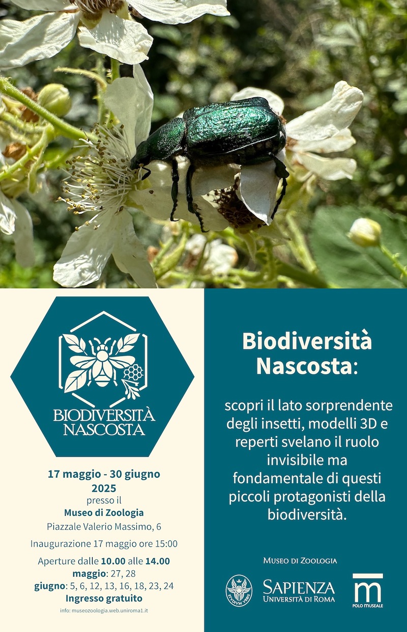 Per la Notte dei Musei del 17 maggio 2025, il Polo Museale Sapienza inaugura, presso il Museo di Zoologia, il secondo appuntamento del progetto Biodiversità Nascosta, promosso e finanziato da Sapienza Università di Roma nell’ambito del Bando Terza Missione 2023, a cura di Pierfilippo Cerretti, in collaborazione con le ricercatrici Noemi Spagnoletti e Aleida Ascenzi, il ricercatore Dario Nania, insieme al conservatore Maurizio Mei e alla curatrice Caterina Giovinazzo.