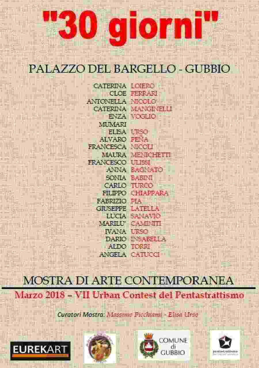 Sta per aprirsi il sipario sulla mostra di Arte Contemporanea “VII Urban Contest del Pentastrattismo” a cura dell'associazione umbra Eureka Eventi d'Arte di Massimo Picchiami.. Dopo il grande riscontro ottenuto nelle città di Roma, Napoli, Terni, Garda e Reggio Calabria il Movimento Pentastrattismo approda ora a Gubbio nella splendida cornice del Palazzo del Bargello tipico esempio dell'architettura gotica in una cittadina prettamente medievale e punto di riferimento culturale. La mostra di Arte Contemporanea “VII Urban Contest del Pentastrattismo” inizierà il 1 marzo e terminerà il 10 dello stesso mese. L'ingresso è libero. Questa è l’unica mostra di carattere internazionale dedicata interamente al Movimento Pentastrattismo, che prende spunto dalla parola greca Penta (Cinque) perché cinque sono considerate le sotto famiglie dell'arte astratta in generale, ritroviamo l'arte informale e materica, la pittura segnica, analitica e concettuale. Il Pentastrattismo è un movimento d'arte nato nel febbraio del 2015 ad oggi il movimento vanta oltre 30 iscritti e possiede artisti in Spagna, Senegal, Brasile ed Argentina. Saranno esposte opere, frutto della passione, della creatività e della tecnica di 23 artisti provenienti da tutta Italia e dall’estero tutti quotati in importanti case d'asta del nostro territorio i quali presenteranno alcune delle loro opere realizzate in questi ultimi anni i partecipanti di questo nuovo evento sono: Caterina Loiero, Cloe Ferrari, Antonella Nicolo, Caterina Manginelli, Enza Voglio, Mumari, Elisa Urso, Alvaro Peña, Francesca Nicoli, Maura Menichetti, Francesco Ulissi, Anna Bagnato, Sonia Babini, Carlo Turco, Filippo Chiappara, Fabrizio Pia, Giuseppe Latella, Lucia Sanavio, Marilù Caminiti, Ivana Urso, Dario Insabella, Aldo Torri, Angela Catucci. Il movimento è presentato in televisione attraverso il Canale 125Arte Italia del digitale terrestre dalla FR Art Collection TV tutti i sabato dalle ore 17 alle 20 e tutte le domeniche dalle ore 10 alle 13. Quest’altro importante successo per gli artisti aderenti al Movimento rappresenta il frutto di un risultato di anni di duro lavoro, sacrificio e impegno. Sede Mostra Palazzo del Bargello, Largo del Bargello, 06024, Gubbio, Italia