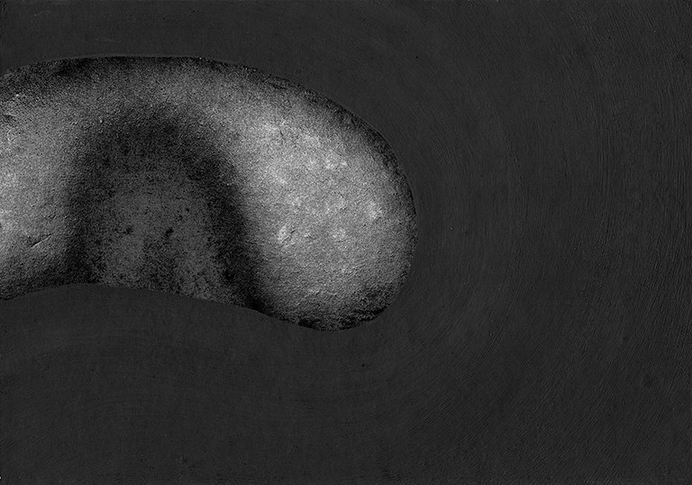 Come spiega l’artista stesso “la carta accoglie velocemente l’immagine che si sviluppa nella mia testa, respingendo i dubbi. È un processo lento che non sempre vede la luce e che quando trova una sua strada cerca di semplificare le immagini fino ad arrivare a pensieri incisivi ed essenziali. Lascio il bianco della carta in sostituzione di ciò che ancora non conosco di una forma, immaginando una nascita da dentro un corpo; un viaggio dagli organi interni fino alle sinuosità del corpo esterno”.