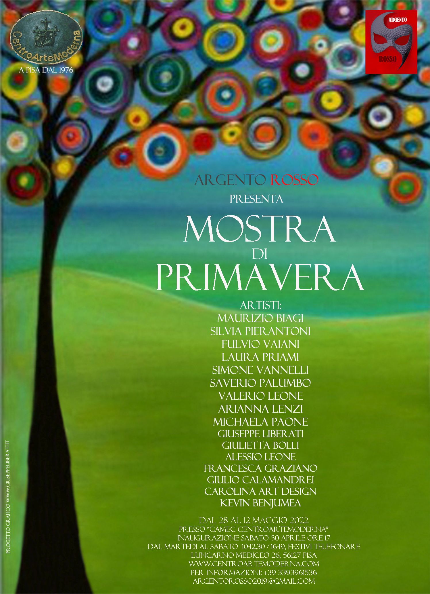 Si apre al pubblico giovedì 28 Aprile 2022 ( con inaugurazione Sabato 30 aprile 2022 alle ore 17) presso il GAMeC CentroArteModerna di Pisa (Lungarno Mediceo n.26) curata e ordinata da Massimiliano Sbrana, la "Mostra di Primavera" promossa da Ass.ne Argento Rosso.