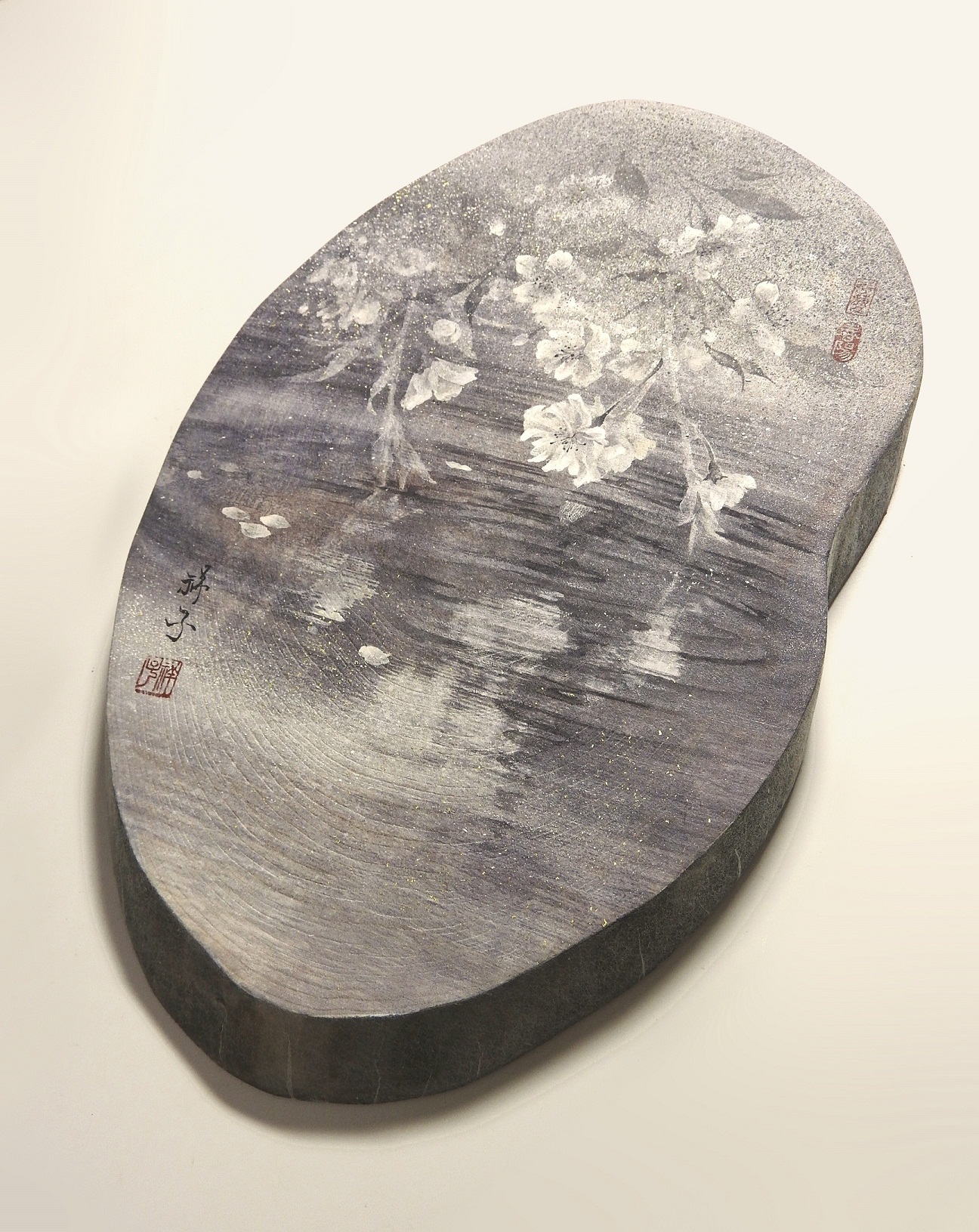 Ogni dipinto raffigura una scena effimera tratta dal mondo naturale, che si riflette nell'acqua increspata, invitando a meditare sulla transitorietà della vita stessa.