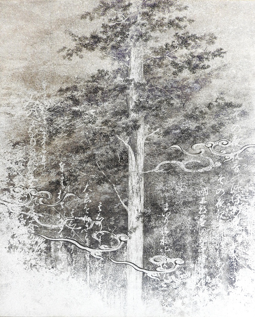 Spesso, se le condizioni ambientali risultano favorevoli, gli alberi possono avere delle vite infinitamente più lunghe di quelle umane, e in Giappone esiste una specifica cerimonia, denominata Tobusatate (とぶさたて), che viene celebrata quando un albero viene abbattuto per fornire il legname per la costruzione di un santuario o di un torii, il caratteristico portale che segna l’accesso ad un’area sacra. Il rito prevede che un ramo prelevato dall’albero venga inserito al centro del ceppo principale: infine si ringrazia l'albero per averlo potuto utilizzare. Parte delle opere qui in mostra sono appunto ispirate a questa pratica rituale: la pittura viene stesa direttamente su sezioni di hinoki – il cipresso giapponese, un albero considerato sacro – e la composizione pittorica viene calibrata in corrispondenza del centro del tronco, poiché anche questo particolare è importante nella cerimonia sacra del Tobusatate. I materiali fittili sui quali sono state eseguite le pitture provengono direttamente dal Giappone, e più precisamente da Nishikawa Baum, un'azienda forestale di Hanno, nella prefettura di Saitama, che l’artista ringrazia sentitamente.