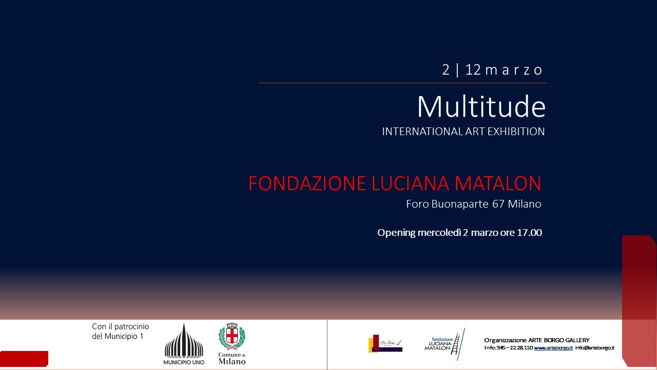 Mercoledì 2 marzo alle ore 17.00 presso la Fondazione Luciana Matalon prende il via la rassegna espositiva di arte contemporanea “Multitude”. La mostra curata da Anna Isopo di Arte Borgo Gallery con la collaborazione di Giorgia Pirone pone l’attenzione sulla singolarità espressiva di ogni singolo autore in cui pittura, scultura e fotografia definiscono un percorso artistico complesso che si sviluppa dalle loro storie e dalle loro culture, le cui differenze non sono in contrasto ma caratterizzano la definizione di arte come espressione inconscia di sentimenti. La moltitudine di lavori dei 22 artisti internazionali traccia una linea molteplice, non frammentata, saldata dalla necessità di espressione come esercizio dell’anima e della mente.