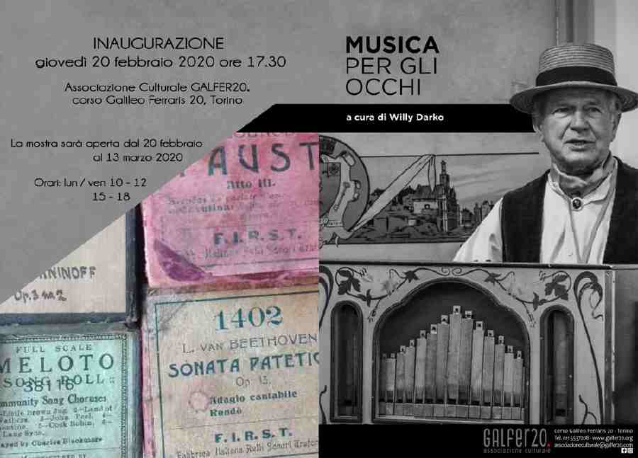 Si inaugura giovedì 20 febbraio alle 17,30 presso l’Associazione Culturale Galfer20, in Corso Galileo Ferraris 20, la mostra Musica per gli occhi, per ricordare il suo curatore, Willy Darko, ad un anno dalla scomparsa.