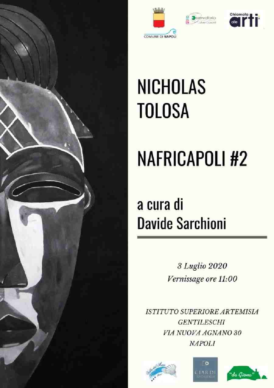 Venerdì 3 Luglio 2020, presso l’ Istituto Superiore Artemisia Gentileschi (attraverso la particolare collaborazione della dirigente scolastica dott. ssa Paola Albertazzi, i prof. Maurizio Mariella e Manuela Sorice), a Napoli, via Nuova Agnano 30, si inaugura alle 11,00 l’installazione permanente composta da due opere pittoriche di Nicholas Tolosa, grazie al coinvolgimento del Tavolo Interassessorile per la Creatività Urbana del Comune di Napoli, dell’ dell’Osservatorio Comunicazione Partecipazione Culture Giovanili (OCPG) dell’Università di Salerno. La mostra, a cura di Davide Sarchioni, si intitola “NAFRICAPOLI #2”, è la seconda tappa di un ampio progetto con cui l’artista intende realizzare diverse opere pubbliche sul territorio comunale di Napoli.