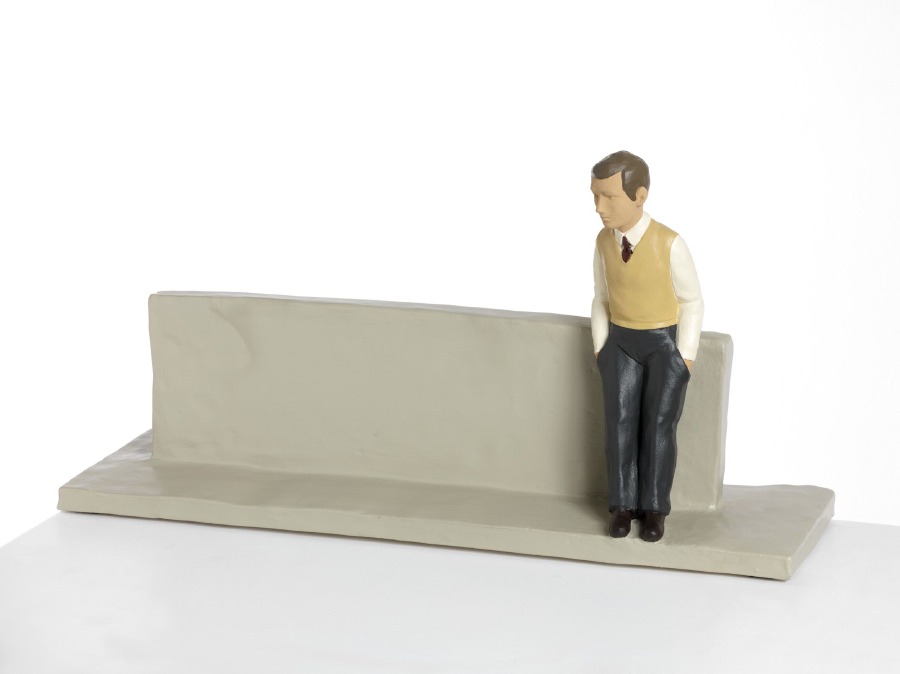 Lo stesso allora si può dire se indichiamo la rappresentazione plastica di un uomo in piedi su una sfera, o sdraiato su un letto, o intento a leggere seduto a un tavolo dalla forma resa all’essenziale. Fossero pure modellati con un identico materiale e colorati con identiche sostanze.
