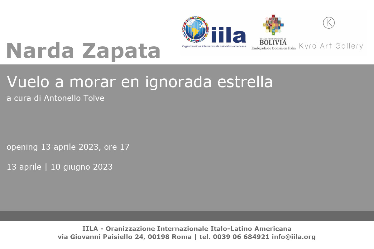 L’IILA | Organizzazione Internazionale Italo-Latino Americana, in collaborazione con l’Ambasciata dello Stato Plurinazionale di Bolivia, con la Kyro Art Gallery e con la Fondazione Filiberto e Bianca Menna, è lieta di annunciare Vuelo a morar en ignorada estrella, un progetto speciale di Narda Zapata che sarà inaugurato il 13 aprile, ore 17:00, negli spazi della Sala Amintore Fanfani dell’IILA, in via Giovanni Paisiello 24 (Roma).