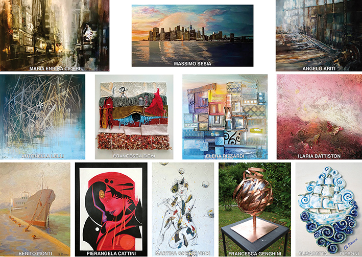 Angelo Ariti incontra il fascino segreto dell’archeologia industriale in originali approcci interpretativi; Ilaria Battiston lavora con personalità tra materiali di recupero e visionarietà favolistica; Pierangela Cattini interroga nel colore le istanze dell’oggi attraverso la figura femminile; Maria Enrica Ciceri porta sulla tela un mix di culture nell’atmosfera emblematica delle metropoli; Francesca Genghini elabora la sua scultura nella vigoria di colori e materie in progress; Martina Goetze Vinci libera nei collage l’energia dell’esistere in sogni di un mondo migliore; Antonella Lelli sceglie stralci di paesaggi in intersezioni interiori di vita vissuta; Benito Monti rivive nel ricordo di un Naturalismo pieno di magie evanescenti; Elisabetta Pieroni con le antiche lavorazioni in terracotta e ceramica interpreta le emozioni e la poesia della materia; Elena Rizzardi e la sua TextilArt lasciano intravvedere visioni infinite tra concettualità e non-forma; Massimo Sesia mette in scena la metafisica del paesaggio nello stupore naturalistico; Francesca Zichi con gli scarti di un’originale FiberArt ricompone una realtà piena di incognite. ”.