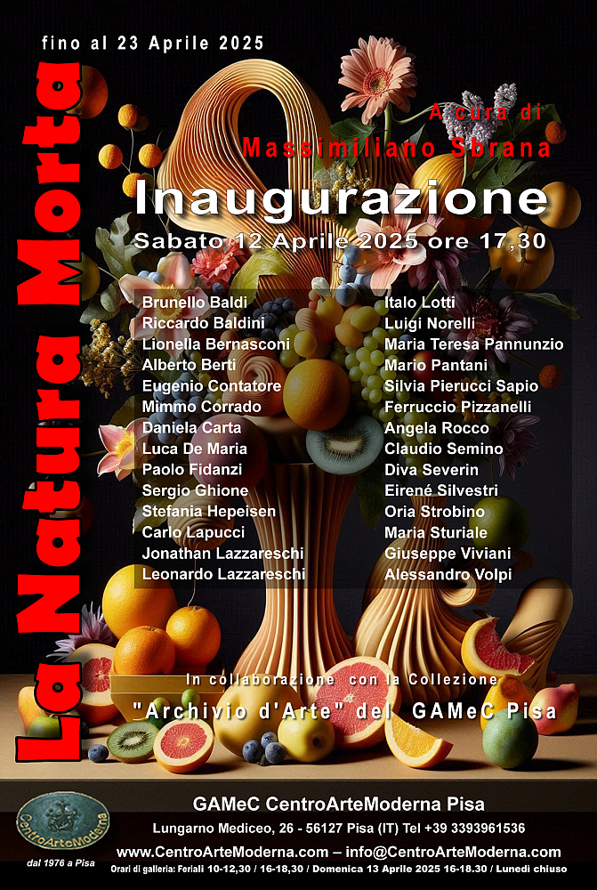 Si inaugurerà Sabato 12 Aprile 2025 ore 17,30 presso il GAMeC CentroArteModerna di Pisa (Lungarno Mediceo n.26) curata e ordinata da Massimiliano Sbrana, la mostra "La Natura Morta" edizione 2025.