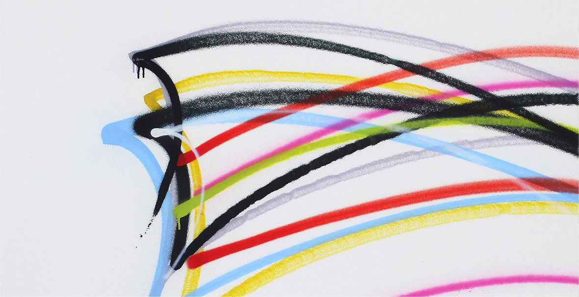 Il percorso espositivo prende avvio da Rettangolareverticale (2003), dove il segno che si ispessisce nella ripetizione delle linee e l’insistenza sulla forma rettangolare sembrano voler replicare e portare a fondo i confini della tela. È proprio lo spazio pittorico a venire messo in discussione a partire dalle opere del 2005, esposte nella prima sala del piano superiore, in cui la reiterazione conduce alla disarticolazione del rettangolo e la tonalità si fa più luminosa, portando ad un’esplosione cromatica destinata a rimanere caratteristica del ciclo fino ai suoi esiti più recenti. Il nucleo di opere esposto nella seconda sala risale al 2010-2012: qui il segno non assume una forma riflessiva nello spazio della tela, ma una forma più materiale, e allo stesso tempo più mentale, sopra e oltre quello spazio. La pittura sembra strabordare oltre il limite del supporto, coinvolgendo lo spazio e l’osservatore.