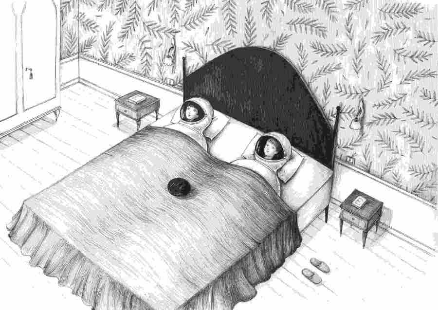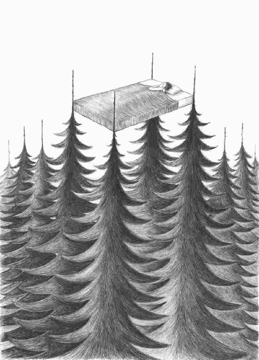 When the games are over and you are forced to go to bed, the Camping suddenly changes its appearance: a new and uncanny imaginary opens up, a dream world where sheets are ghosts and beds come to life or travel suspended on tree tops, in a sort of descent into the subconscious, into the unknown.