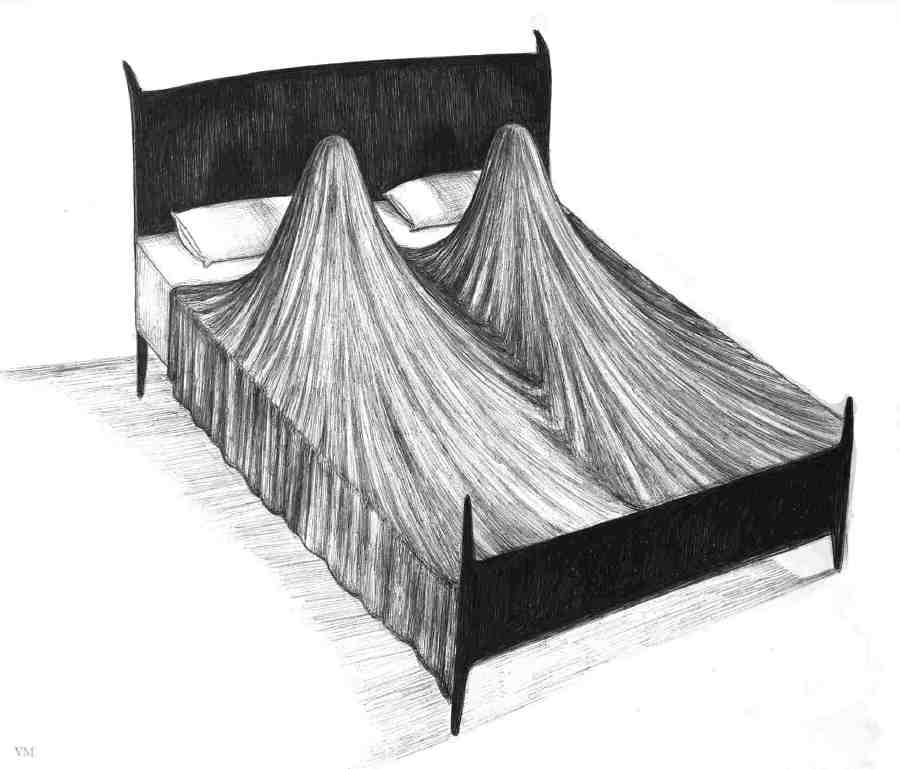 Quando i giochi sono finiti e si è obbligati ad andare a letto, il Camping all’improvviso cambia aspetto: si apre un nuovo e perturbante immaginario, un mondo onirico dove le lenzuola sono spettri e i letti prendono vita o viaggiano sospesi sulle cime degli alberi, in una sorta di discesa nel subconscio, nell’ignoto.