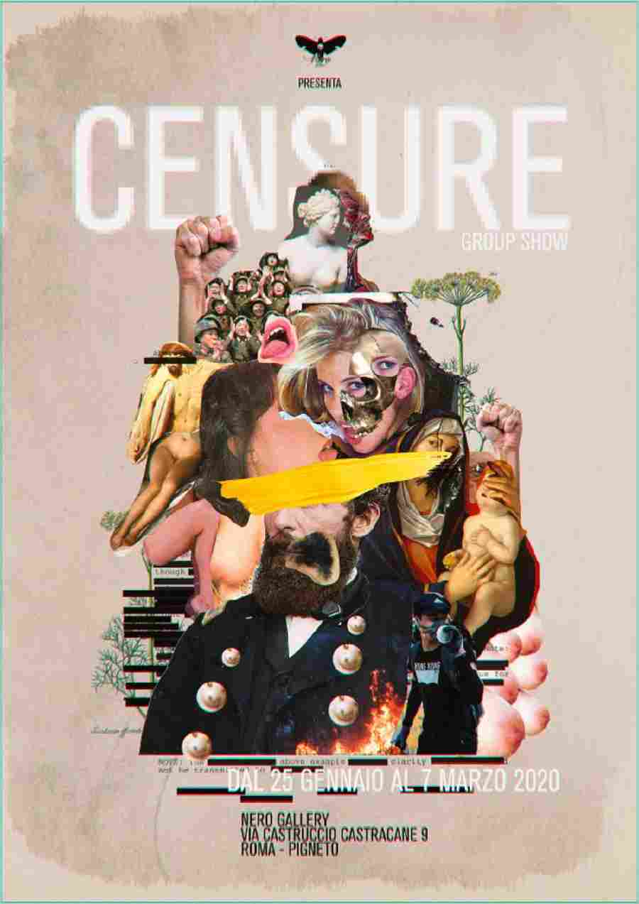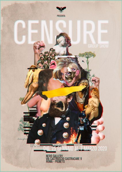 Nero Gallery è lieta di presentare “Censure”, mostra collettiva che raccoglie 26 artisti, italiani e internazionali, provenienti da ambienti molto diversi ed ognuno dei quali presenterà un’opera sul tema della censura, sempre attuale e particolarmente significativo nei tempi più recenti a causa dei numerosi casi di opere d'arte rimosse, sottoposte a tagli o condannate in quanto ritenute offensive per la comune sensibilità.
